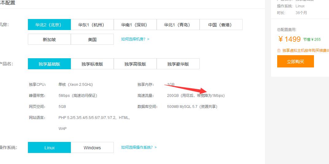 剛才說的是老款,現(xiàn)在新款的服務(wù)器很多沒有流量限制了,但是帶寬也是制約的一大因素,如下圖